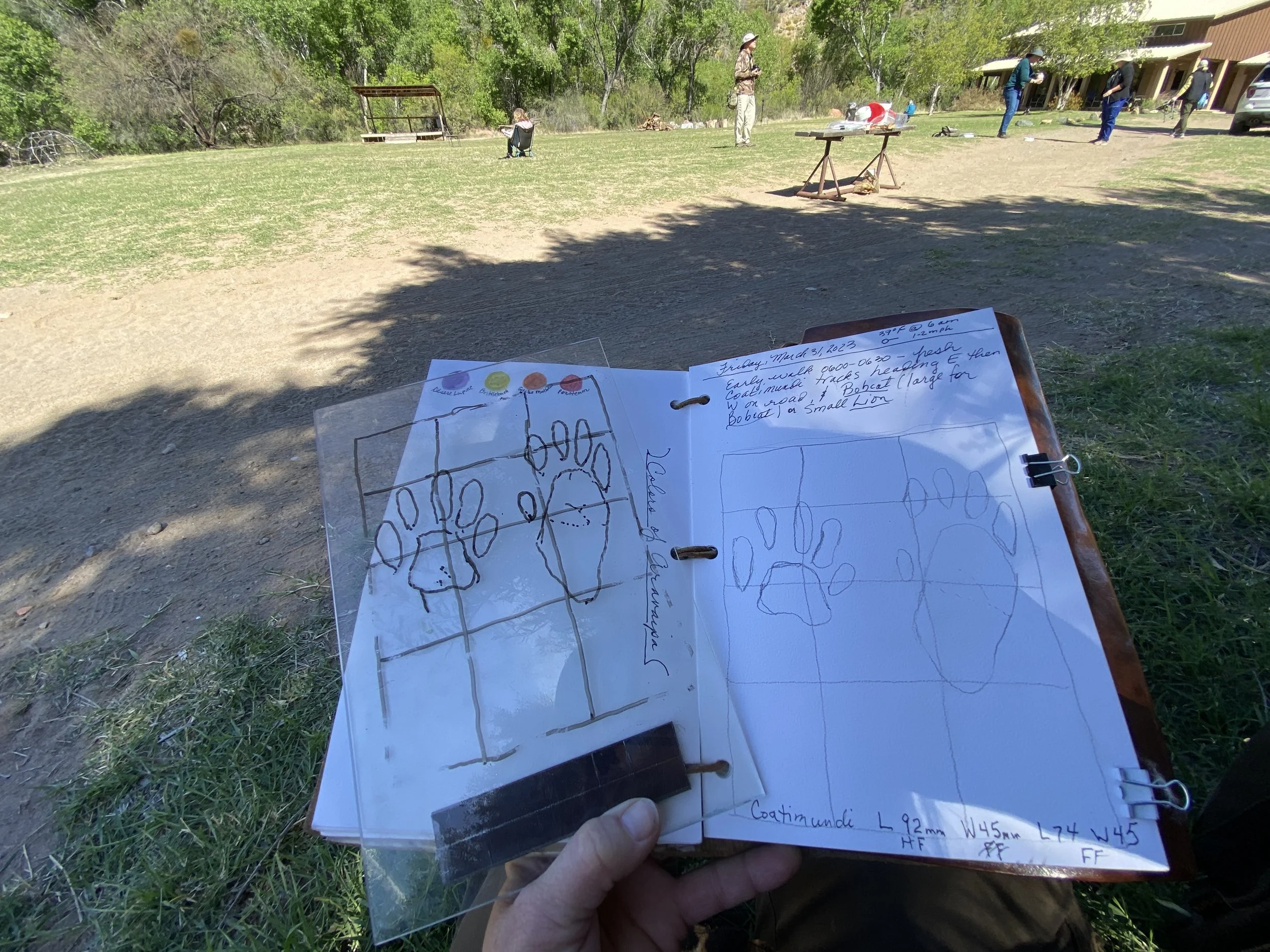 It was definitely a busy field camp: daily nature rambles to journal and explore; scheduled learning workshops; and so many fun activities: animal tracking; plaster cast making; wild pigment foraging and paint / ink making; plant dissection and scope drawing; viewing bighorn sheep and new lambs through the spotting scopes; plant ID; live animal capturing and study (cactus mice, lizards, and a grumpy diamondback rattlesnake).